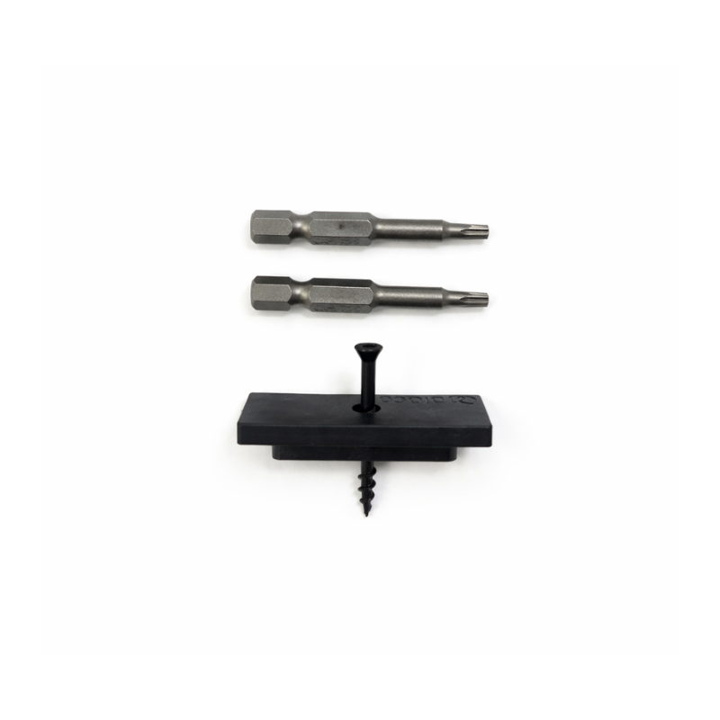 Este cubo de grapas de fijación de PVC con tornillería está diseñado para garantizar una sujeción segura y duradera en la instalación de tarimas, revestimientos o sistemas de exterior, facilitando el trabajo del profesional y optimizando los tiempos de montaje.