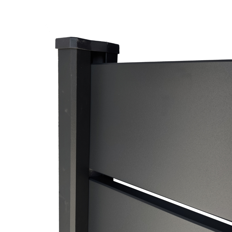 Además, su lacado Qualicoat asegura una aplicación impecable del lacado, elevando el estándar de calidad y durabilidad del producto. El diseño de las lamas de aluminio es plano y bloquea la visibilidad en ambas direcciones, ofreciendo una alternativa estética y funcional.